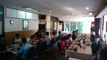 おはようございます。今日は快晴です。疲れているようですが、元気です。朝会では、目を覚ますために近くの川まで散歩して体操しました。ホテル最後の朝食をしっかり食べました。
