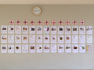 夏休みの自由課題の中に「かみかみクッキング」があります。かむことの大切さについての意識を高め、料理に親しみをもってもらうために企画しています。今年も117の作品が集まりました。職員室前とヒマラヤ広場に展示してあります。給食のメニューになる作品はどれでしょうか?お楽しみにしてください。
