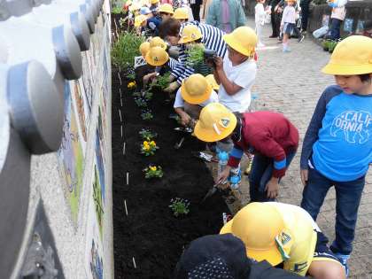 1年生は、地域の「楽働クラブ」の方々にご指導いただいて、緑道に花植えに行って来ました。チューリップやヒヤシンスの球根、パンジーやすいせんの苗などを植えました。早く大きく育ってほしいです。