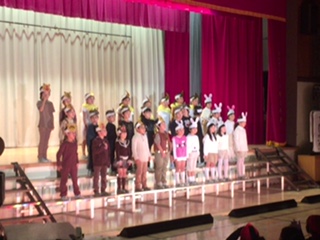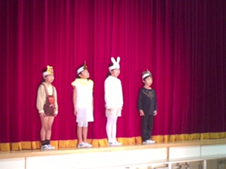 写真は、はじめの言葉の1年生、1年生の「まんげつおどりたいかい」、3年生の「あやうし!にんじゃ学園」です。