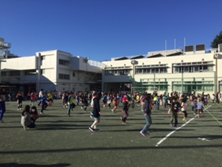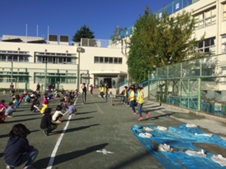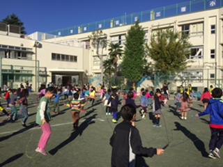 運動委員会の児童が、来週から始まる「短なわ週間」に向けて、跳び方や技の紹介をしました。縄とびカードを使い、中休みに全校で取り組みます。