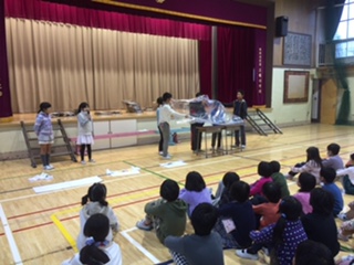 今日の集会は、保健・給食委員会でした。風邪予防と窓あけ換気について発表しました。休み時間には、窓あけ隊が校舎の窓を開けに行きます。あと、2週間、風邪をひかないように気をつけましょう。
