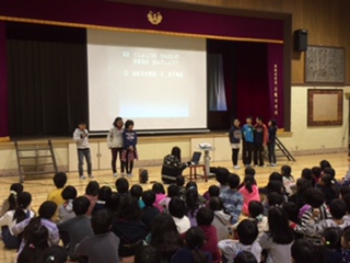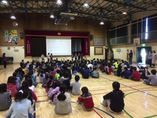 今朝は、図書委員会の児童が、図書室の使い方、図書館司書さんの紹介、低・中・高学年ごとのおすすめ本を紹介しました。