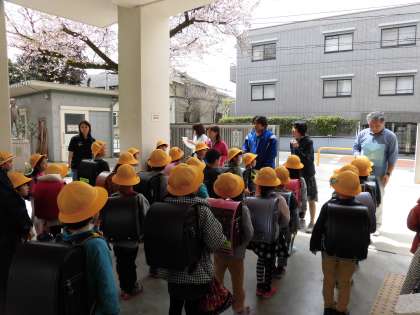 1年生は22日まで集団下校をします。同じ方向のお友達と帰ります。