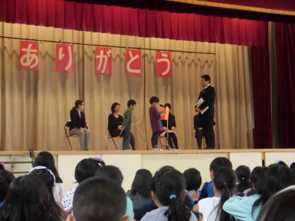 昨年度までお世話になった先生方とは、1ヶ月ぶりに会いました。みんなこの日を楽しみにしていました。各学級で書いた手紙を代表児童が読み、感謝の気持ちを伝えました。