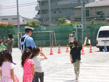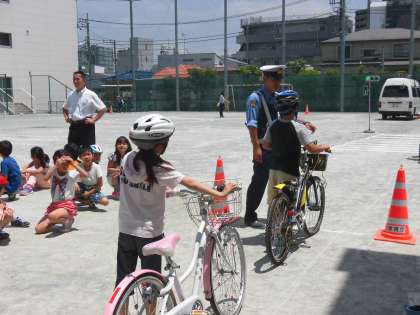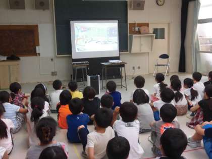 全学年、交通安全についてのDVDを見せてもらいました。とてもわかりやすいお話でした。1年生と2年生は横断歩道の渡り方を教えてもらいました。3年生と自転車に乗ることができるわかば学級の児童は、自転車の正しい乗り方について教えてもらいました。