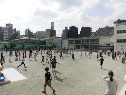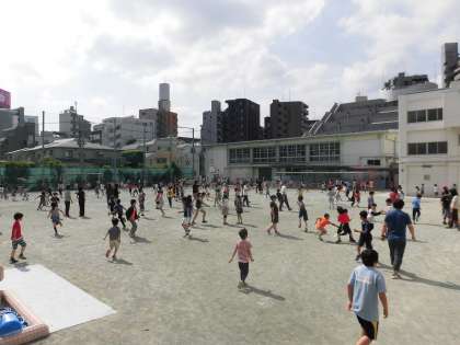 6月10日(金)の朝、運動集会を行いました。1〜6年生全員でしっぽとりをしました。