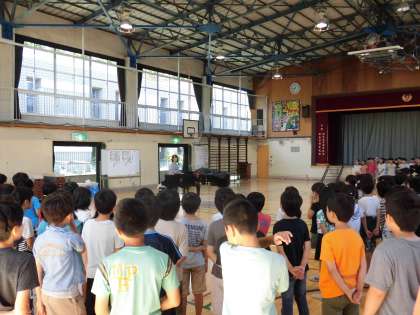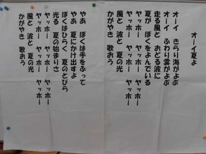 6月17日、朝の時間に音楽朝会を行いました。「オーイ夏よ」の歌を元気よく歌いました。