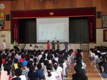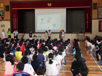 9月9日、こどもまつりのお店紹介集会を行いました。3年生以上のお店がとてもわかりやすく紹介され、早くお店に行きたくなりました。
