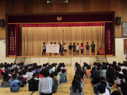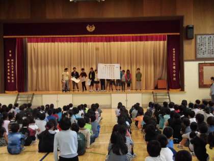 9月23日生活委員会集会が行われました。そうじロッカー点検できれいだったクラスの発表と委員会の活動内容についての発表をしました。