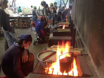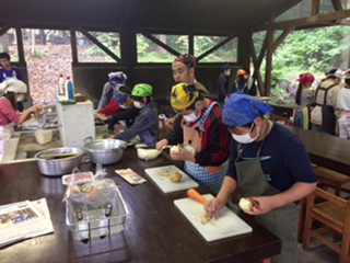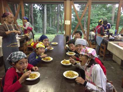 飯盒炊さん開始?? かまど係・やさい係・おこめ係に分かれてカレーライスを作りました。友だちと協力して、すべての班が美味しいカレーライスを作ることができました。いただきます!