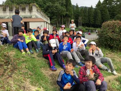 無事に全員が下山しました。屋根つき広場で、アップルパイ&ミックスジュースを飲んで元気がでました。これから、手紙書き・入浴・自由時間です。