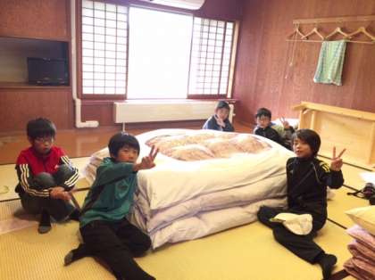 おはようございます。全員元気です。川場での生活も最終日です。朝食をしっかり食べ、荷物整理・部屋の片付けします。天気は曇りです。