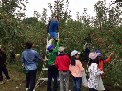 宮田果樹園でりんごの説明を受け、1人2個のりんご狩りをしました。りんごは川場のお土産になります。