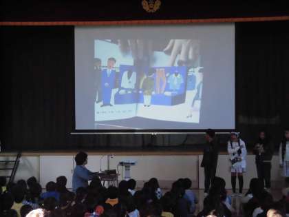 12月2日(金)図書委員会集会が行われました。図書委員が『とうさん まいご』の読み聞かせをしました。とうさんがどこにいるのか探しながら聞いていました。