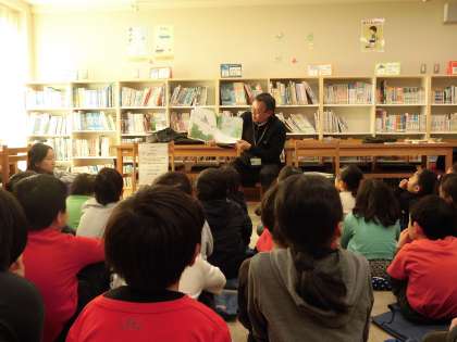 12月16日に1年・2年・わかば学級の子どもたちが、下馬図書館の方にお話会をしていただきました。絵本などの読み聞かせ、素話、手遊び、本の紹介など楽しい時間をありがとうございました。