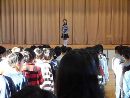 3学期が始まりました。始業式では、校長先生の話のあと、2年生とわかば学級の児童が代表で3学期の抱負などを話しました。3学期は、1年の中で登校日数がいちばん少ない学期であり、次の学年への進級に向けて準備する大切なときです。一日一日を大切に過ごしてほしいと思います。
