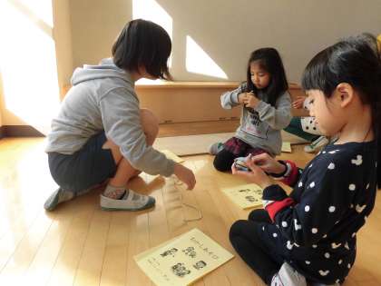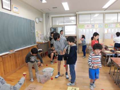 2月3日、1年生と6年生で交流をしました。生活科の学習で取り組んでいるむかしあそびを6年生が教えてくれたのです。けん玉、コマ、あやとり、お手玉のグループに分かれて、それぞれ持ち方から技まで丁寧に教えてくれました。見本を見せてくれたり、歌を歌って盛り上げてくれたりと、6年生のおかげでとても上達しました。お兄さんお姉さんに優しく教えてもらって大喜びの1年生でした。