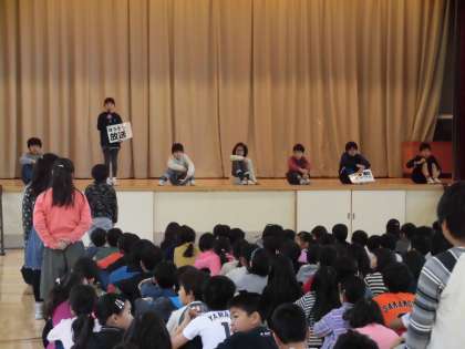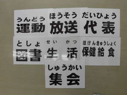 先週発足した委員会の委員長が、集会で仕事内容を説明したり、みんなにお願いしたいことを発表したりしました。1年生は明日の「1年生を迎える会」が終わるまで朝会や集会にデビューできないため、教室で学級指導の時間でした。明日の「1年生を迎える会」「開校記念集会」も楽しみです。