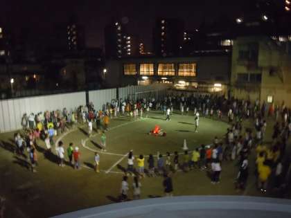 夕方からは代表委員や集会委員の子どもたちを中心にキャンプファイヤが行われ、汗で服がびっしょりになるくらいみんなで思いきり踊りました。