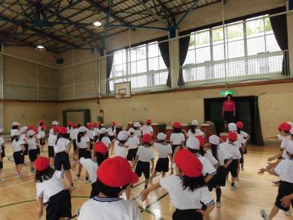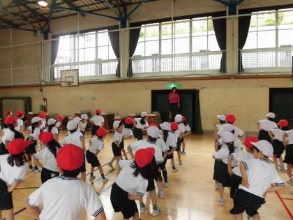 今日から、運動会特別時間割が始まりました。各学年、運動会に向けて練習に励んでいます。上の写真は、1・2年生の表現の練習の様子です。想像をふくらませながら、動きを考えて、一生懸命に取り組んでいました。