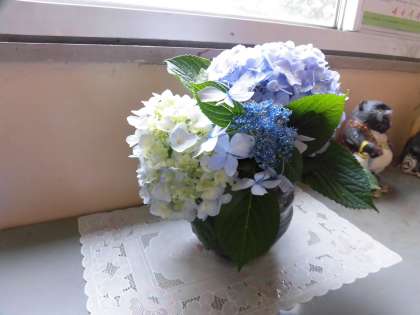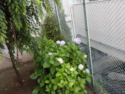 梅雨時にきれいに咲くあじさい。三宿小学校にはあちらこちらに咲いています。きれいな花を主事さんが廊下に飾ってくれています。