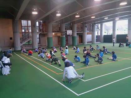 午後からは雨具を身につけて1時間ほど宿舎近くのハイキング。途中から雨足が強くなり、宿舎に戻ったときはみんなびしょびしょに。予定を早めて、ゆっくりお風呂に入っています。