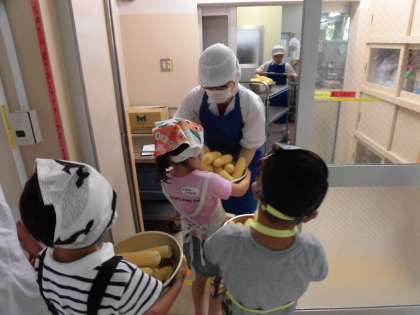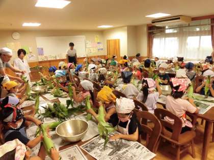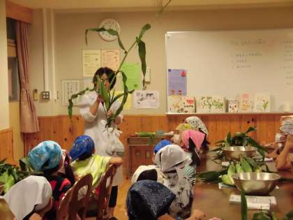 1時間目に1年生は、とうもろこしの皮むき体験をしました。栄養士の先生から説明を聞き、皮むきに挑戦。とても上手に剥けました。今日の給食が楽しみです。