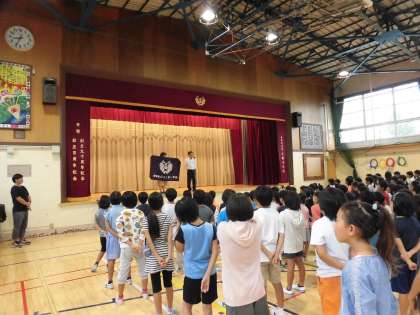本校では、6年生の児童が当番活動として、毎日屋上に校旗をあげています。その旗が色あせて痛みも激しかったため、PTAのみなさんから新しい旗をいただきました。今日、全校朝会で校長先生から紹介していただきましたので、明日から新しい旗が掲げられます。楽しみです。