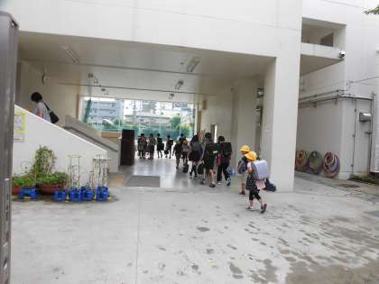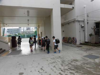 1日から8日まで集団登校を行っています。今日は、登校指導日ということで、先生方と一緒に学校まできました。