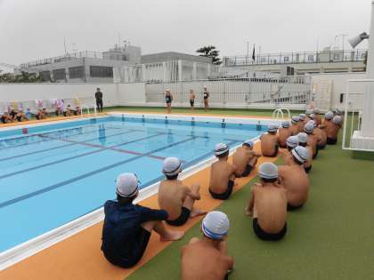太陽が顔を出してくれませんでしたが、1・2時間目に中学年、今年度最後の水泳学習を行いました。プールおさめや検定もしました。
