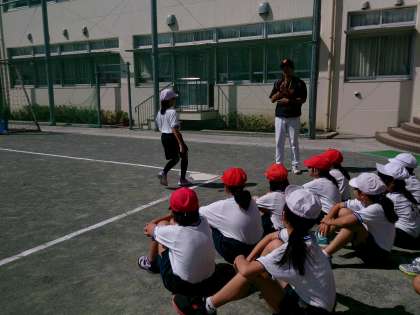 授業の内容は、ボールの投げ方やミニゲームなどですが、元気な挨拶や掛け声のかけ方もスポーツマンとして大切なことを教えてもらいました。