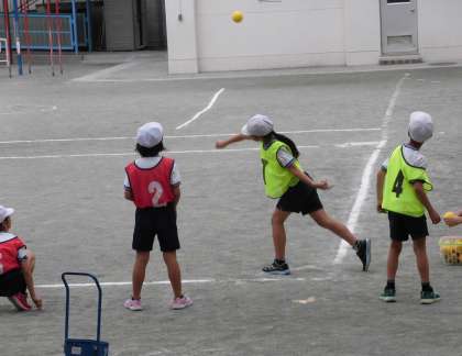 昨日、読売ジャイアンツの方に教えていただいたことを生かして、体育の授業に取り組みました。投げ方が上手になりました。