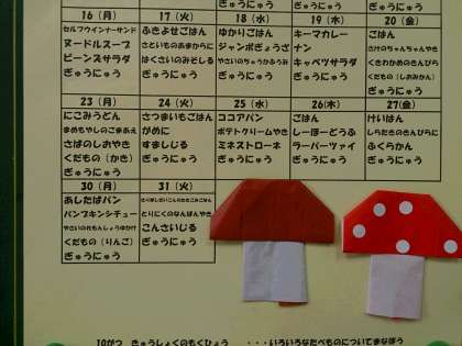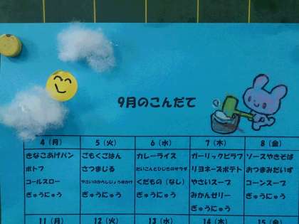 今日で9月の給食も終わりです。月末になると、翌月の献立表が配られます。
