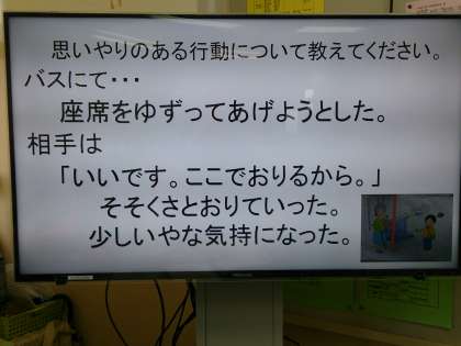 11月8日(水)の5時間目、4年2組の教室で道徳の研究授業が行われています。
