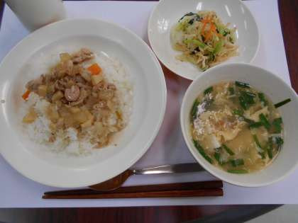 本日の給食は、あんかけチャーハン・にらたまスープ・切干大根のナムル・牛乳です。