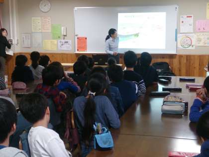 11月15日(水)の午後、4年生2クラスが合同で、「目の健康」の特別授業を受けました。講師は本校の学校眼科医 高本紀子先生です。