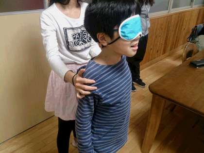授業は、先生自身のプロフィール紹介から始まり、目の不自由なことの体験、目の仕組みなど、様々な内容がテンポよく展開され、子どもたちも熱心に話を聞いていました。