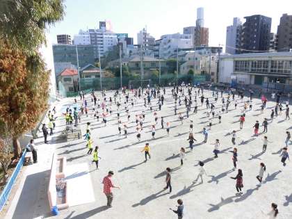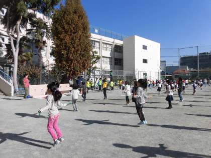 今日から、短なわ週間が始まりました。中休みに音楽に合わせて、いろいろな跳び方に挑戦しています。みんなリズムよく跳べていましたが、約4分間の曲が終わると、あちらこちらから「ハアー、ハアー。」という息づかいが聞こえてきました。