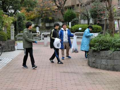 一見きれいに見える緑道ですが、植え込みの中をのぞいてみると、ビンやカン、お菓子の包みなどがたくさん捨てられていました。「どうしてこんなことするんだろうね…」「ごみ箱に捨てればいいだけなのに…」いろいろなつぶやきが聞こえてきました。ごみ拾いを通して、マナーについて考えることができました。