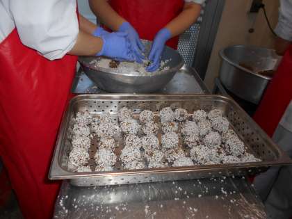 一つづつ丸めて手作りしてくれた調理員のかたに感謝します。