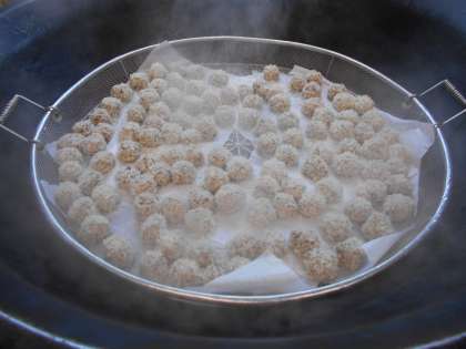 給食室で手作りしたもち米肉団子です。おいしい!という声がたくさん聞かれました。