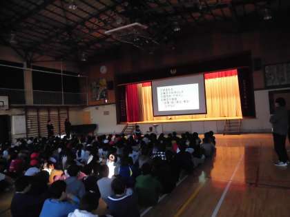 12月14日に東京2020オリンピック・パラリンピック大会のマスコット候補を紹介する朝会を行いました。「マスコットの役割」「マスコット候補の紹介」「選ぶ視点」について説明があり、子どもたちは、スクリーンを見ながらどれにしようか考えていました。マスコットの投票は、各学級で話し合い、3つの中から1つ選びます。