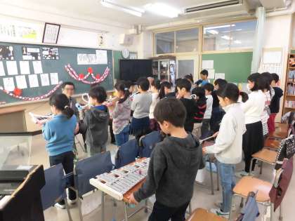 今日は2年生が地域の方と「ふれあい給食会」をしました。いつもお世話になっている地域の方に、感謝の気持ちを伝え、楽しい時間を過ごしていただくために2年生が計画を立てました。生活科の町たんけんについての発表や合奏「アンダルコの歌」の演奏、ダンス、歌の発表などをしました。このように、いつも笑顔で支えてくださる地域の方々のおかげで、児童は生き生きと学校生活を送ることができています。これからも、どうぞよろしくお願いします。本日はどうもありがとうございました。