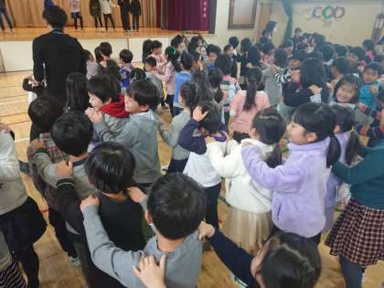 1月19日(金)の朝は、児童集会です。集会委員会の児童が企画した今朝の内容は、「じゃんけん列車」でした。