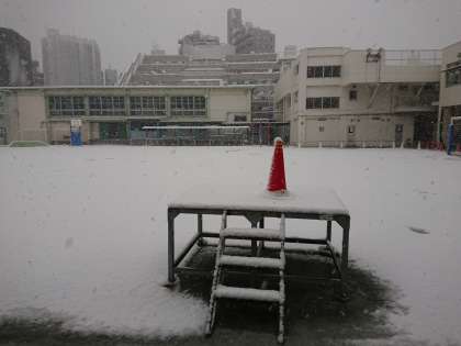 校庭にも雪が積もってきました
