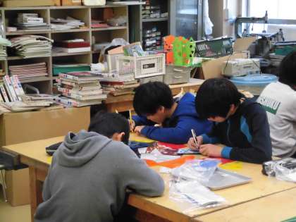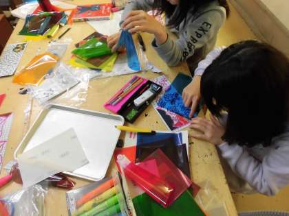 「タッチステンドライト」という、ステンドグラス風のライトを製作中です。皆、慎重にカッターで形を切り抜き、集中して取り組んでいます。仕上がりが楽しみです。
