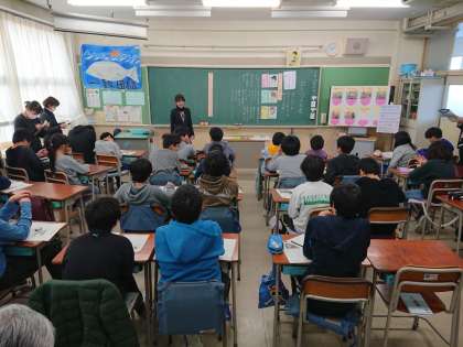 全校の教員が参観するなか、6年生は緊張しつつも真剣に学習に取り組んでいました。子どもたちは、普段の授業では見られない良いところをたくさんの参観者に誉められました。