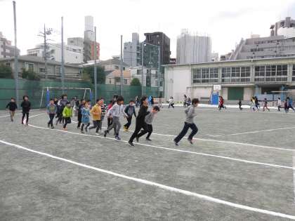 1月29日から2月22日までの約一か月間は、「持久走月間」です。中休みは、全校児童が校庭に出て約5分間走ります。昨日は、雪の影響で校庭のコンディションが悪く、走れませんでしたが、今日は校庭の状態がよく、走ることができました。2月末には持久走大会が行われます。各自、長く走れる体力をつけてほしいと思います。