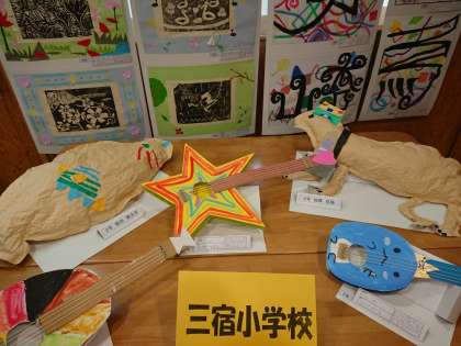 ランチルームには、三宿小学校児童の図工作品も展示されています。展示期間は12日(月)の午前中までです。